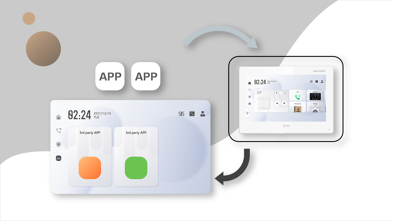 ![]() | Fácil integración con las aplicaciones de Android Con el sistema Android integrado, la estación interior se integra fácilmente con aplicaciones de terceros. Más allá de Hik-Connect, los usuarios pueden optar por instalar hasta dos aplicaciones de Android más en la estación interior y disfrutar de una operación conveniente con interfaces visualizadas. |