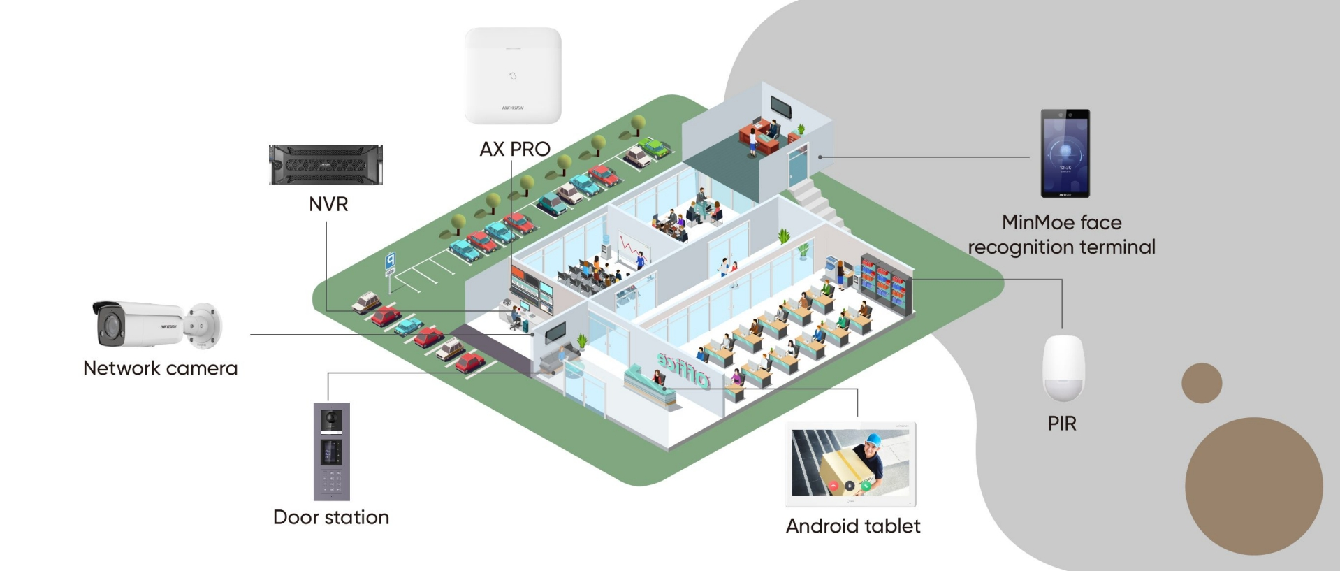 - La tableta con la aplicación Hik-Connect incorporada controla y administra todos los dispositivos de control de acceso, seguridad por video y alarma de Hikvision.