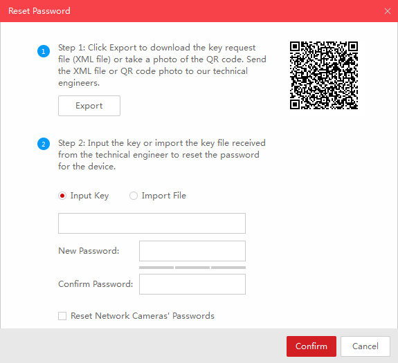 Nota: Recuerda que, si tu dispositivo tiene la opción de reestablecer la contraseña por medio de un código, es necesario que reinicies el dispositivo y le envíes al equipo de soporte el serial completo del dispositivo y la fecha en de iniciación o Start Time que está registrada en SADP.