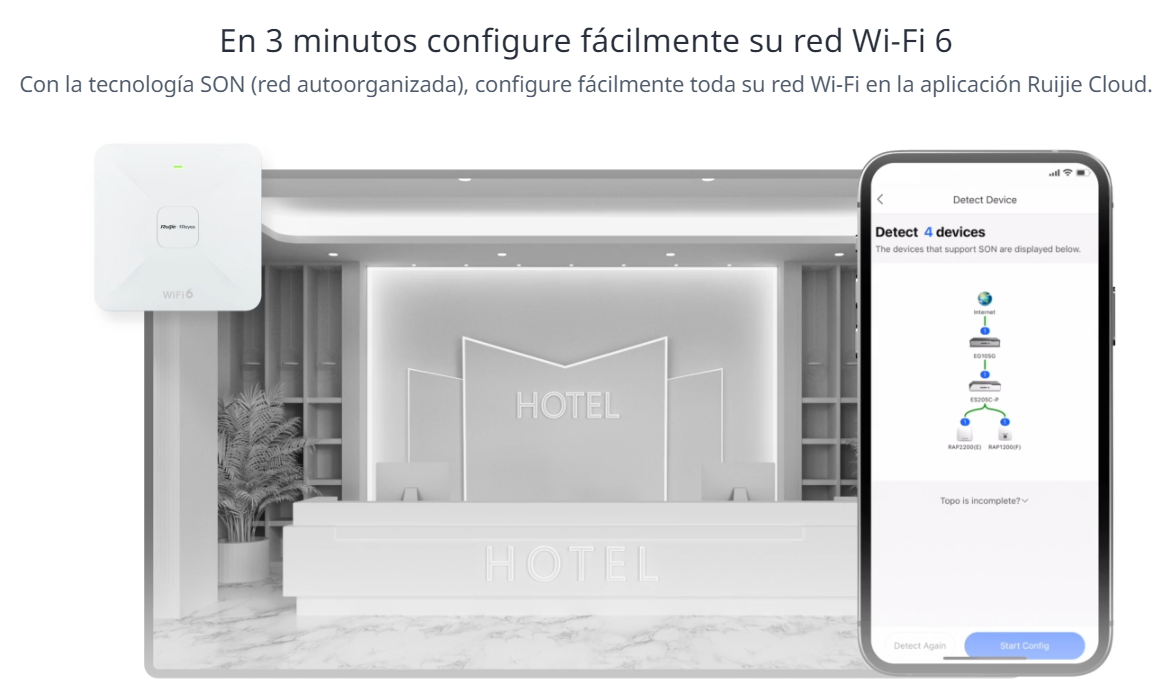 En 3 minutos configure la red Wi-Fi 6 con la aplicación Ruijie Cloud.