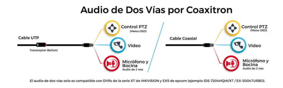 Nota: El audio de dos vías por Coaxitron se envía únicamente por tecnología TVI.