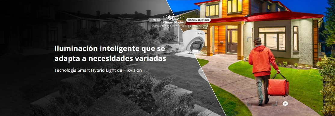 Soporta la tecnología Dual Light, podemos tener en la noche la imagen de B/N con los IR encendidos y cuando detecte movimiento por medio del analítico de ACUSENSE Lite (filtro de humanos y vehículos) encenderá la luz blanca para poder tener el evento a color, cuando pase el evento se vuelve a colocar el la imagen en B/N.