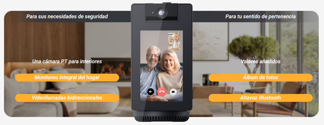 Presentamos la S10, la primera cámara inteligente de videollamadas de EZVIZ que te conecta con tus seres queridos y te brinda mayor protección. Gracias a su intuitiva pantalla táctil de 4 pulgadas, incluso quienes no son expertos en tecnología pueden realizar videollamadas con su familia sin esfuerzo. Además de las videollamadas, te permite vigilar a tu familia con una amplia cobertura e imágenes nítidas. Y aún hay más: guarda tus recuerdos más preciados como un álbum de fotos digital y llena tu hogar de alegría con el sonido de alta calidad de su altavoz Bluetooth.