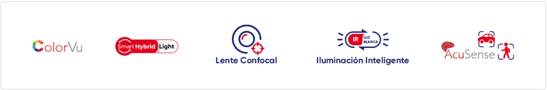 Soporta la tecnología Dual Light, podemos tener en la noche la imagen de B/N con los IR encendidos y cuando detecte movimiento por medio del analítico de ACUSENSE (filtro de humanos y vehículos) encenderá la luz blanca para poder tener el evento a color, cuando pase el evento se vuelve a colocar el la imagen en B/N.