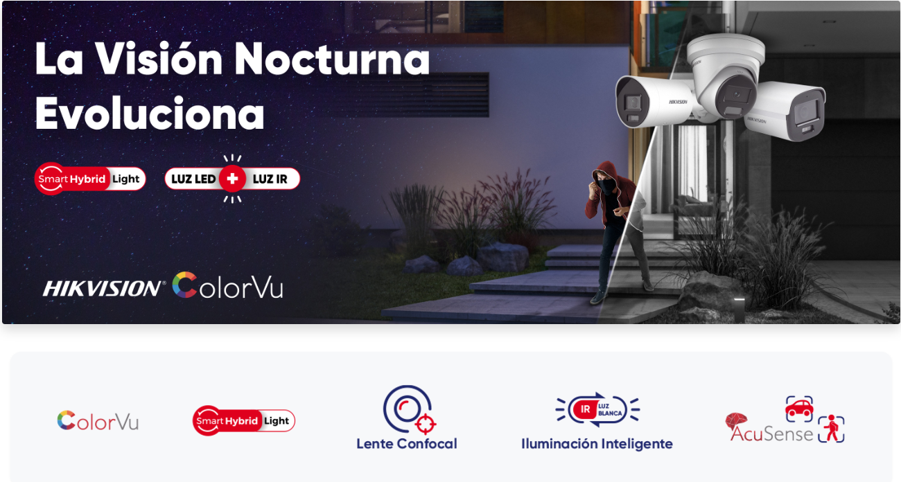 Soporta la tecnología Dual Light, podemos tener en la noche la imagen de B/N con los IR encendidos y cuando detecte movimiento por medio del analítico de ACUSENSE (filtro de humanos y vehículos) encenderá la luz blanca para poder tener el evento a color, cuando pase el evento se vuelve a colocar el la imagen en B/N.