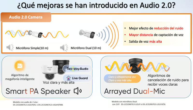 Soporta la tecnología Dual Light, podemos tener en la noche la imagen de B/N con los IR encendidos y cuando detecte movimiento por medio del analítico de ACUSENSE (filtro de humanos y vehículos) encenderá la luz blanca para poder tener el evento a color, cuando pase el evento se vuelve a colocar el la imagen en B/N.