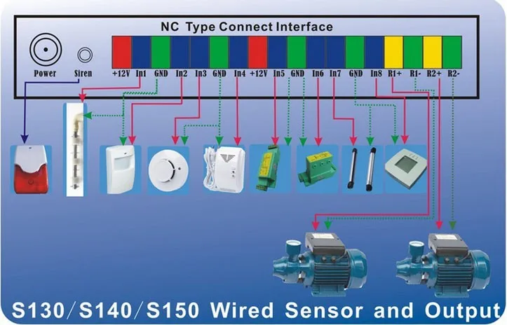 Controlador S130 S140 S150 GSM SMS Conexión por cable
