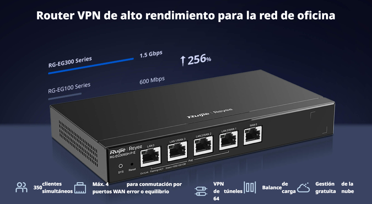 ROUTER DE 5 PUERTOS 10/100/1000 MBPS 4 PUERTO POE GIGABIT ADMINISTRABLE CLOUD RUIJIE RG-EG305GH-P-E