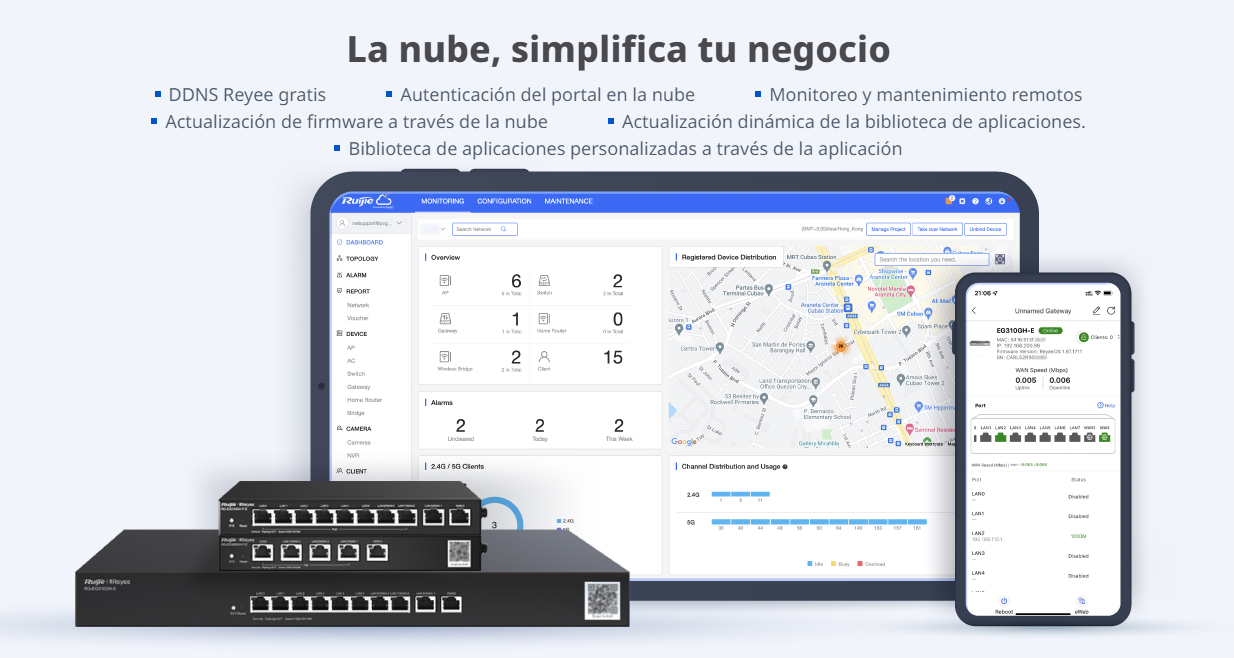 Potente e intuitivo manejo con la nube gratuita de Ruijie