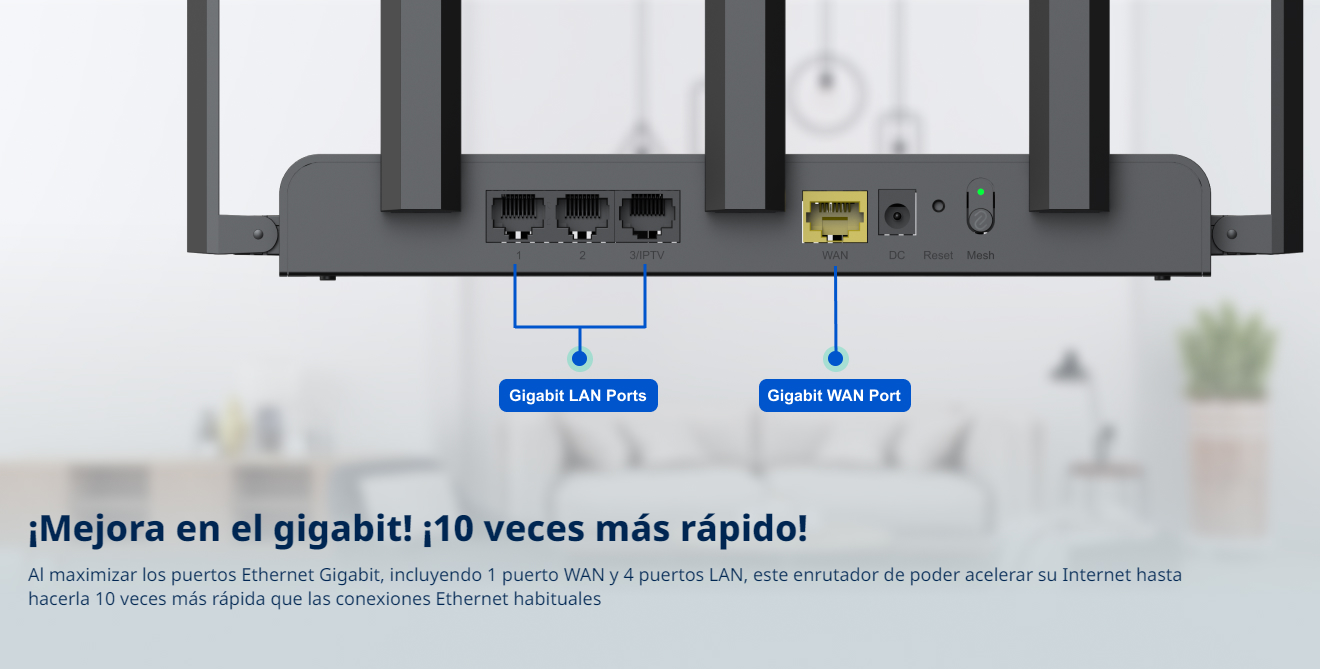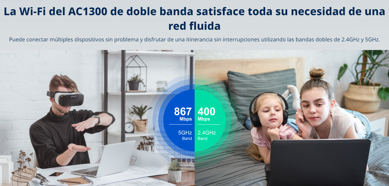 ROUTER INALÁMBRICO GIGABIT WIFI DUAL BANDA 2.4/5GHZ ADMINISTRABLE CLOUD / MESH 1300 MBPS RG-EW1300G