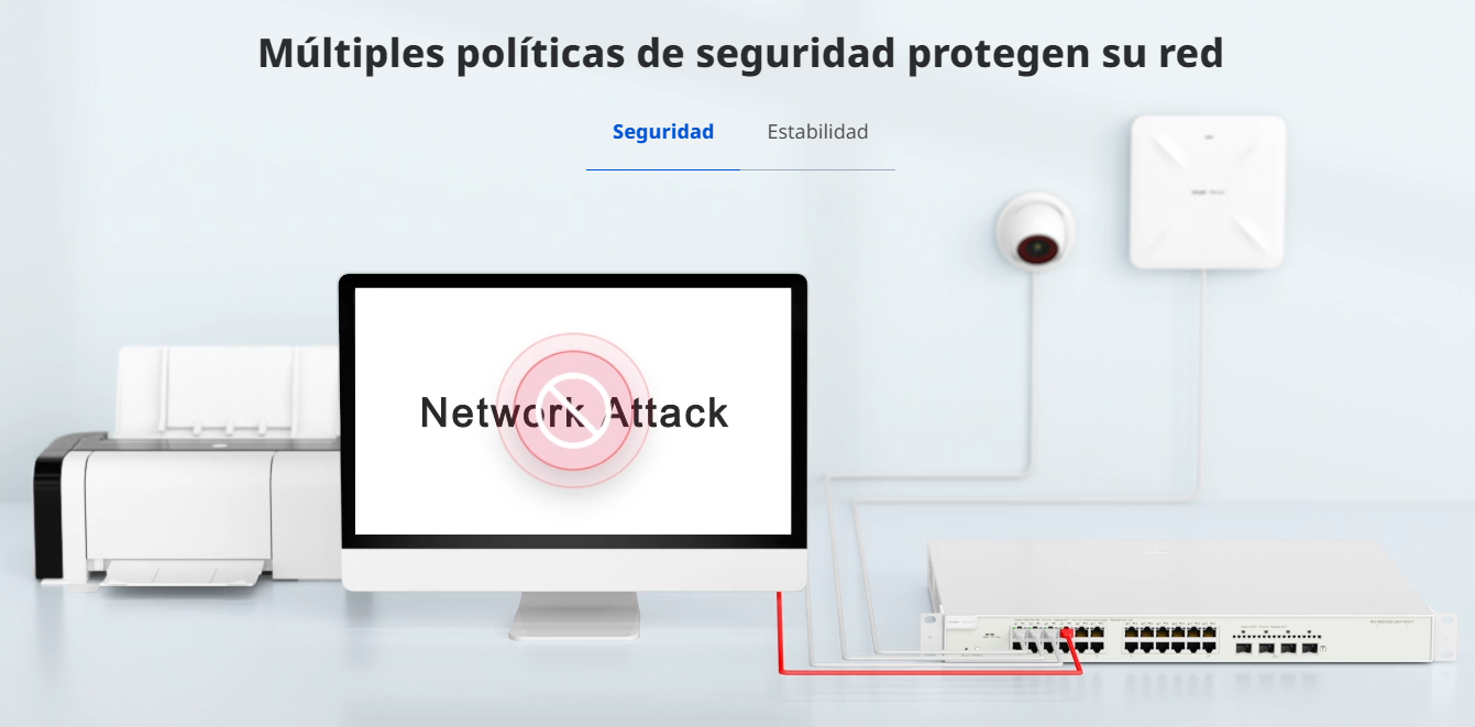 En la red de la oficina, para aislar el acceso a la red entre diferentes departamentos para evitar que las PC infectadas por virus afecten a toda la red, a menudo es necesario dividir la red interna en VLAN según departamentos, pisos, etc. para aislar el dominio de transmisión y mejorar la estabilidad de la red. Los switches gestionables de la serie Ruijie Real-easy proporcionan una forma cómoda y flexible de dividir las VLAN, lo que le permite asignar los puertos a diferentes VLAN según sea necesario. Los usuarios de diferentes VLAN no se afectan entre sí, lo que crea una red más estable para los usuarios.