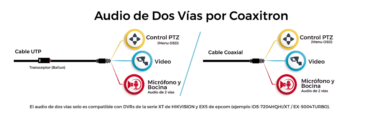 Soporta audio de dos vias por coaxitron (UTP o coaxial).